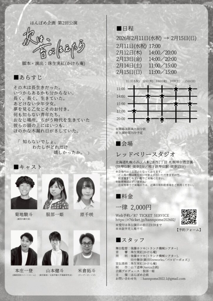 2/11(水・祝)〜15(日)で上演される、はんぽめ企画第2回公演